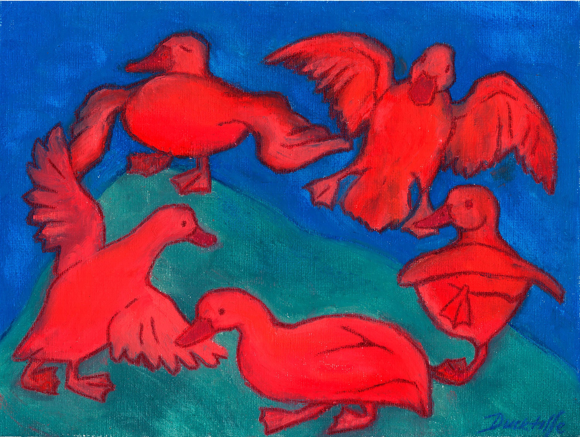The original artwork was created using pastel chalks. The print accurately conveys the texture of the chalk strokes.